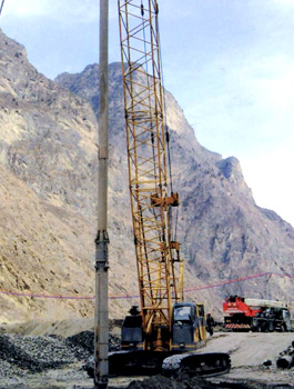 振沖器是振沖法施工中的特制機具。它產(chǎn)生水平向振動力振擠填料及周圍土體,而達(dá)到提高地基承載能力、減少沉降量、增加地基穩(wěn)定性、提高抗地震液化能力。 振沖法施工時除原地沖器外,尚需行走式起吊裝置,泵送輸水系統(tǒng),控制操作臺等。如工程單位缺乏起重機,本廠還供應(yīng)振沖器施工樁架,樁架有單邊滾管立柱式、液壓步履式、簡易履帶式等。